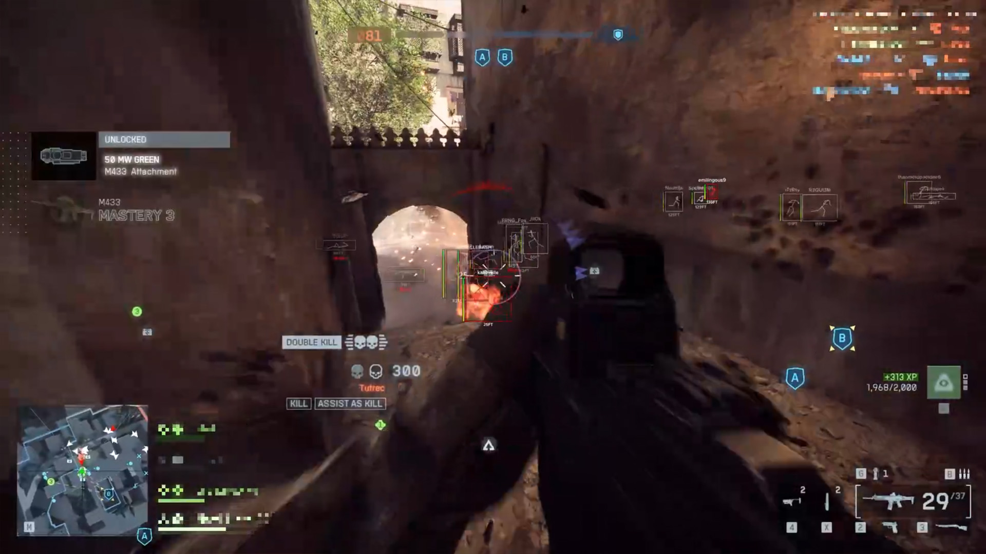 子弹自动追踪至敌人眼眶、下额,一枪一个小朋友!